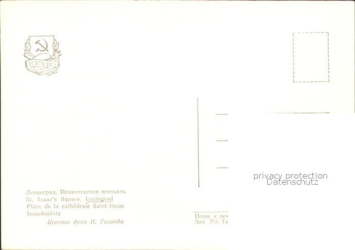 Leningrad St Petersburg Katherale Isaaksplatz postalisch nicht gelaufen Erhaltung siehe scans