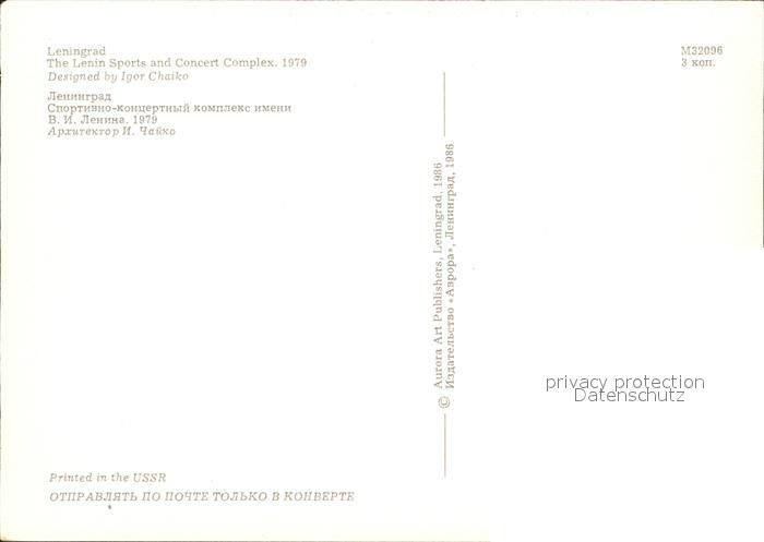 Leningrad St Petersburg Lenin Sport und Konzert Complex postalisch nicht gelaufen Erhaltung siehe scans