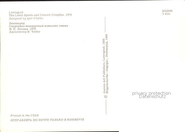 Leningrad St Petersburg Lenin Sport und Konzert Komplex postalisch nicht gelaufen Erhaltung siehe scans