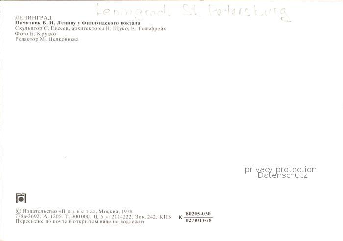 Leningrad St Petersburg Lenindenkmal Bahnhof postalisch nicht gelaufen