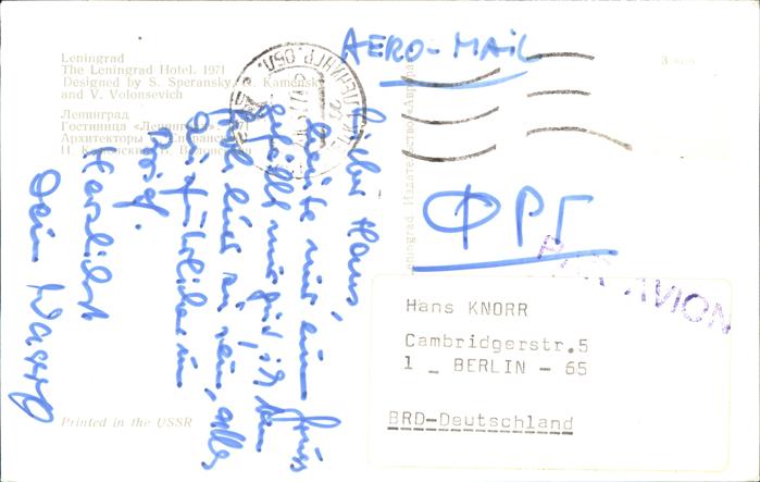 old postcard Leningrad St Petersburg Leningrad Hotel postalisch gelaufen Erhaltung siehe scans