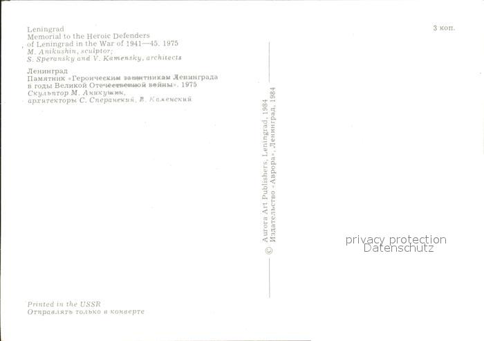 Leningrad St Petersburg Memorial to the Heroic Defenders of Leningrad in World War II aerial view postalisch nicht gelaufen Erhaltung siehe scans