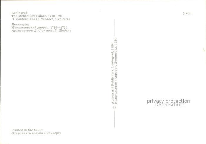 Leningrad St Petersburg Menshikov Palace postalisch nicht gelaufen