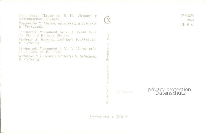Leningrad St Petersburg Monument Lenin Gare Finlande postalisch nicht gelaufen Erhaltung siehe scans