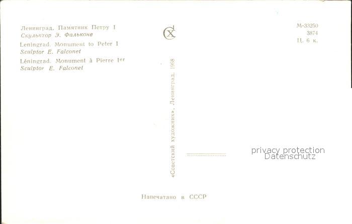 Leningrad St Petersburg Monument Peter der Erste postalisch nicht gelaufen Erhaltung siehe scans