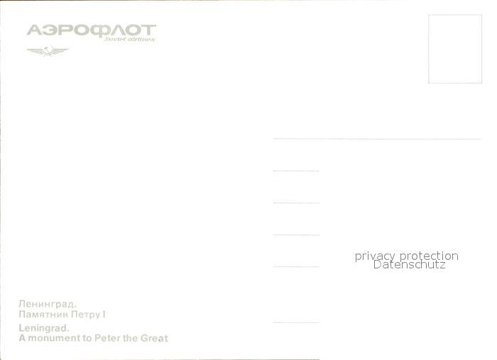Leningrad St Petersburg Monument Peter the Great Denkmal Peter der Grosse postalisch nicht gelaufen Erhaltung siehe scans