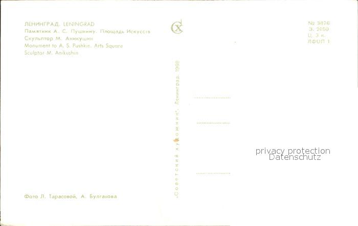 Leningrad St Petersburg Monument Pushkin Arts Square postalisch nicht gelaufen Erhaltung siehe scans