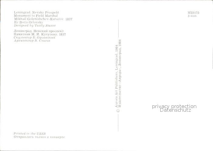 Leningrad St Petersburg Monument to Field Marshal Mikhail Golenishchev Kutuzov postalisch nicht gelaufen Erhaltung siehe scans