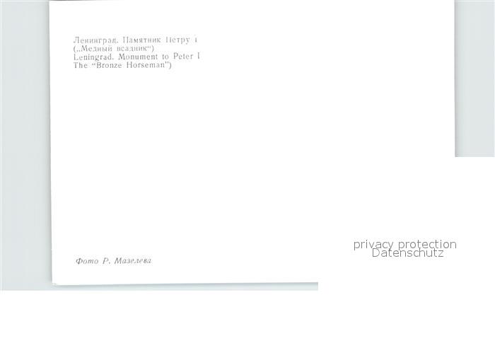 Leningrad St Petersburg Monument to Peter I The Bronze Horseman Reiterstandbild Peter der Grosse postalisch nicht gelaufen Erhaltung siehe scans [FriedD77 kt118box]