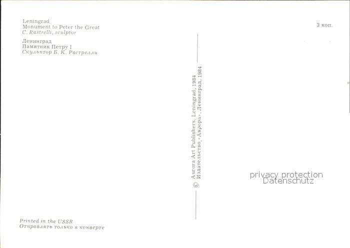 Leningrad St Petersburg Monument to Peter the Great Reiterstandbild Peter der Grosse postalisch nicht gelaufen Erhaltung siehe scans