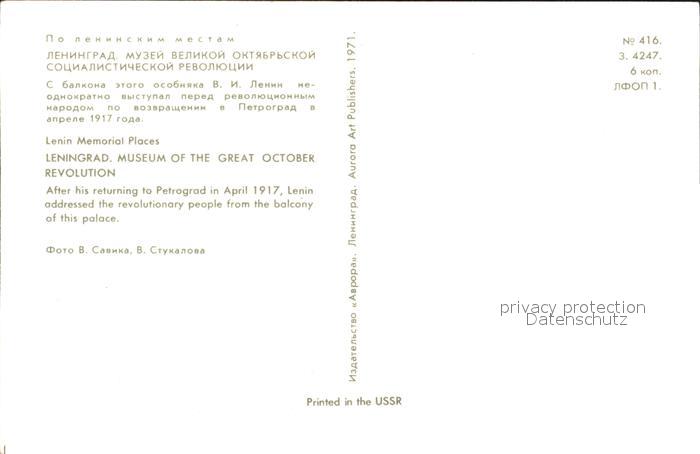 Leningrad St Petersburg Museum of the Great October Revolution postalisch nicht gelaufen Erhaltung siehe scans