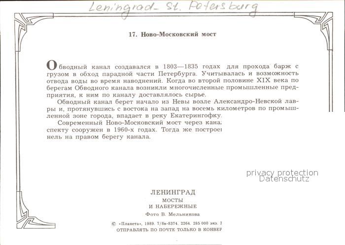 Leningrad St Petersburg Neu Moscow Bruecke postalisch nicht gelaufen Keine Postkarte (siehe scan) Erhaltung siehe scans