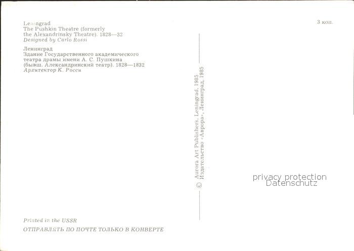Leningrad St Petersburg Puschkintheater postalisch nicht gelaufen Erhaltung siehe scans
