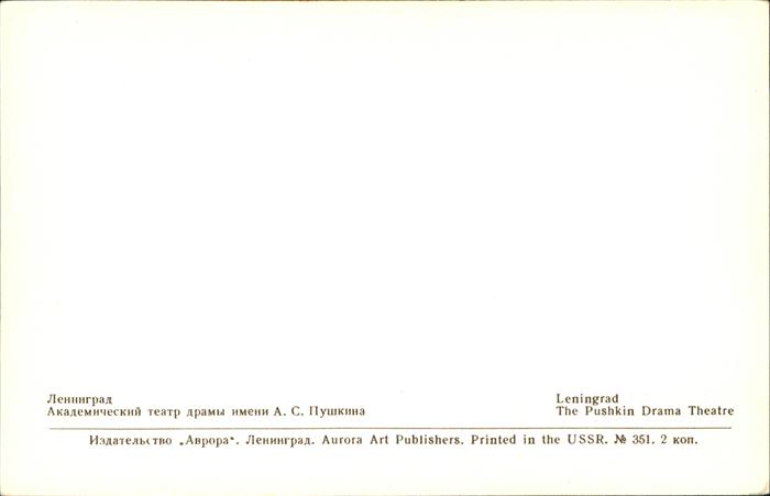 Leningrad St Petersburg Pushkin Drama Theatre postalisch nicht gelaufen
