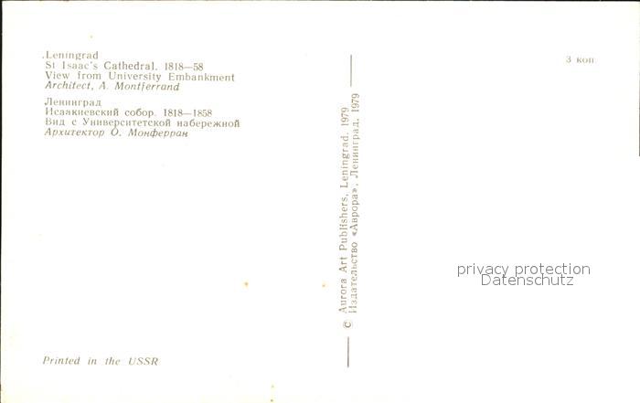 Leningrad St Petersburg St. Isaacs Cathedral postalisch nicht gelaufen Erhaltung siehe scans