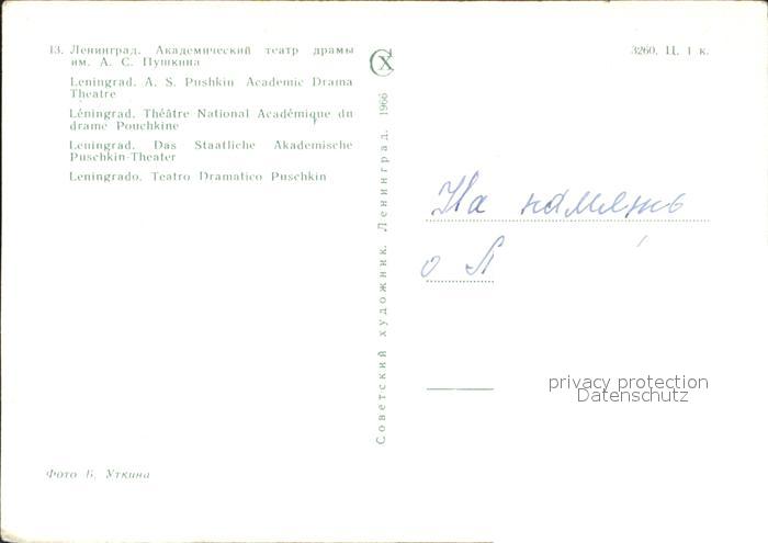 Leningrad St Petersburg Staatl Akad Puschkin Theater Monument postalisch nicht gelaufen Erhaltung siehe scans