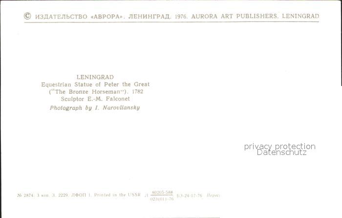 Leningrad St Petersburg Statue Peter Great postalisch nicht gelaufen Keine Postkarte (siehe scan) Erhaltung siehe scans