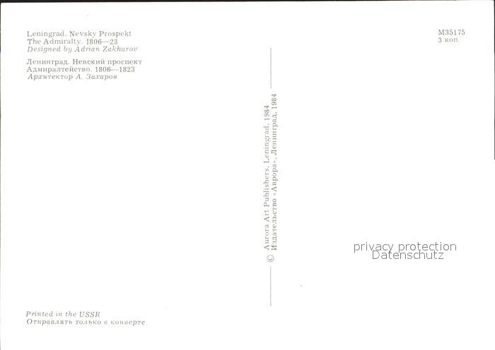 Leningrad St Petersburg The Admiralty postalisch nicht gelaufen