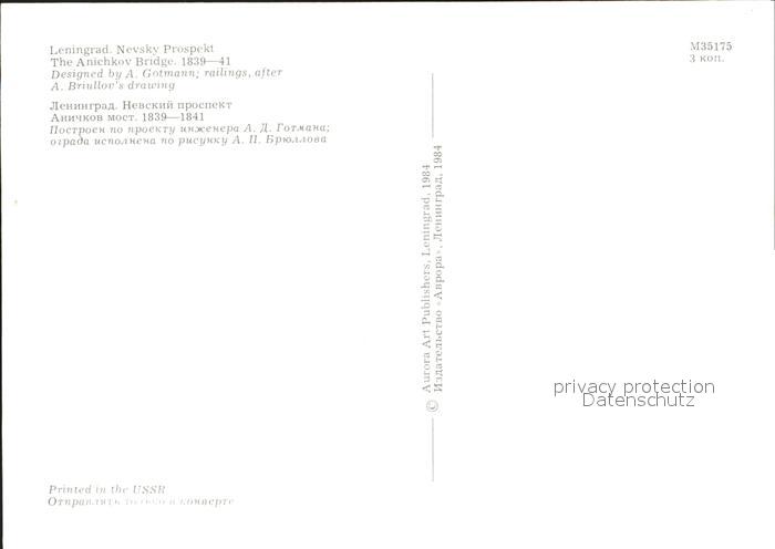 Leningrad St Petersburg The Anichkov Bridge postalisch nicht gelaufen Erhaltung siehe scans