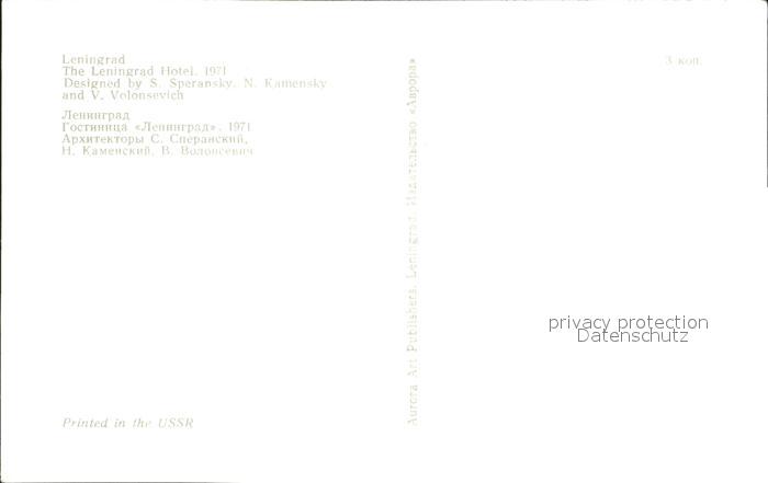 Leningrad St Petersburg The Leningrad Hotel postalisch nicht gelaufen Erhaltung siehe scans
