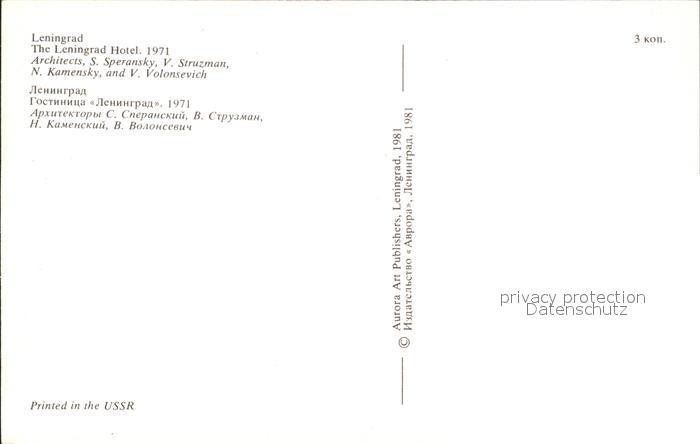 Leningrad St Petersburg The Leningrad Hotel postalisch nicht gelaufen Erhaltung siehe scans