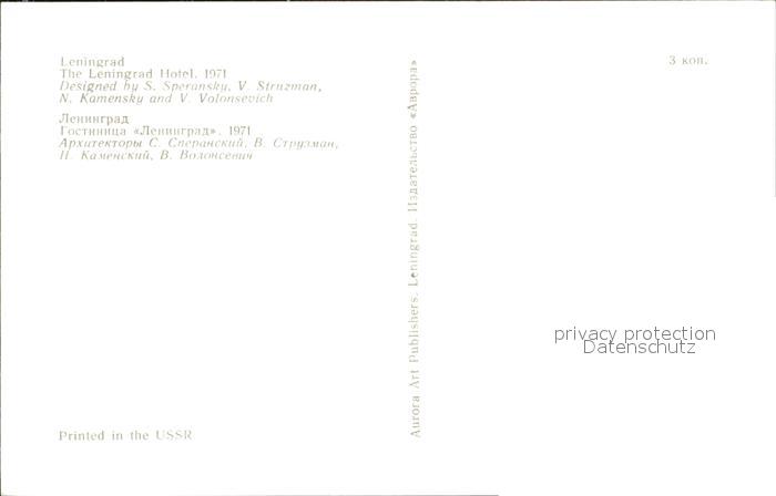 Leningrad St Petersburg The Leningrad Hotel postalisch nicht gelaufen Erhaltung siehe scans