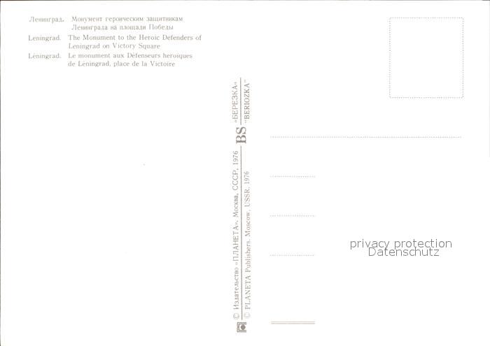 Leningrad St Petersburg The Monumnet to the Heroic Defenders of Leningrad on Victory Square postalisch nicht gelaufen Erhaltung siehe scans