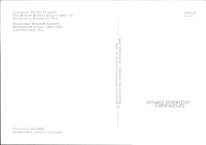 Leningrad St Petersburg The Moscow Railway Station postalisch nicht gelaufen Erhaltung siehe scans