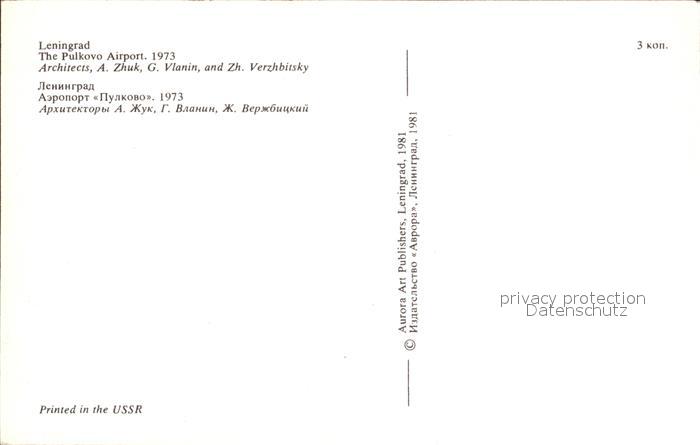 Leningrad St Petersburg The Pulkovo Airport postalisch nicht gelaufen Erhaltung siehe scans
