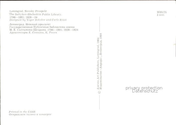 Leningrad St Petersburg The Saltykov Shchedrin Public Library postalisch nicht gelaufen Erhaltung siehe scans