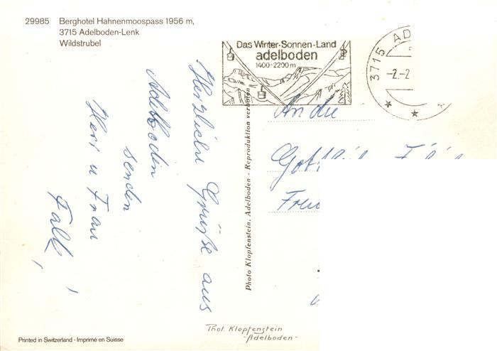 13880933 alte Postkarte Lenk Simmental Berghotel Hahnenmoospass postalisch gelaufen Erhaltung siehe scans [FriedD77] KatCode: 11470060215598