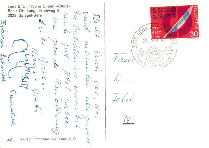 13891392 alte Postkarte Lenk Simmental Chalet Chutz Winterlandschaft Alpen postalisch gelaufen Erhaltung siehe scans [FriedD77] KatCode: 11470060215598