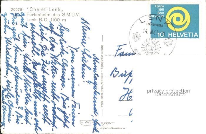 12031653 alte Postkarte Lenk Simmental Chalet Lenk Ferienheim des SMUV postalisch gelaufen KatCode: 11470060215598
