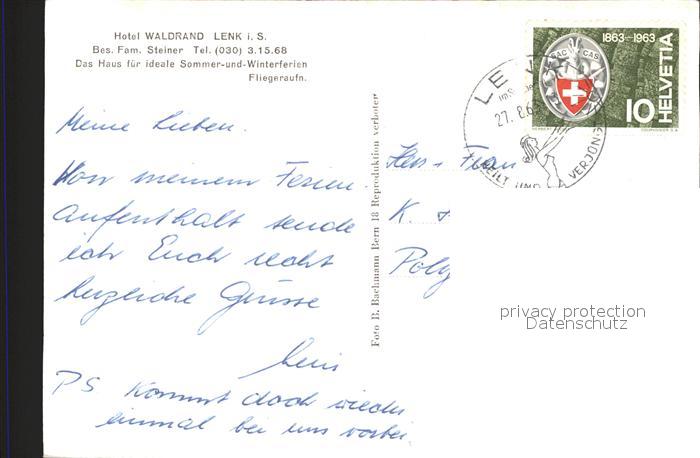 11837305 alte Postkarte Lenk Simmental Hotel Waldrand Fliegeraufnahme postalisch gelaufen Erhaltung siehe scans KatCode: 11470060215598