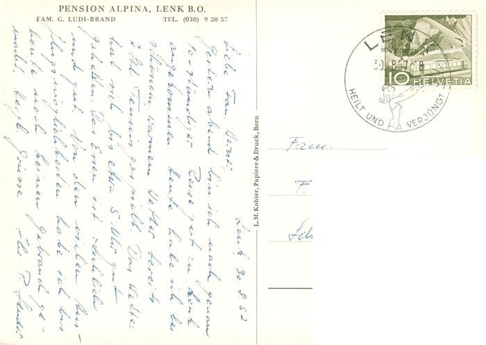 13872624 alte Postkarte Lenk Simmental Pension Alpina postalisch gelaufen Erhaltung siehe scans [WerneD78] KatCode: 11470060215598