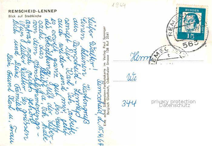 72893488 alte Postkarte Lennep mit Stadtkirche postalisch gelaufen Erhaltung siehe scans [LiesaD40] KatCode: 11110005120000