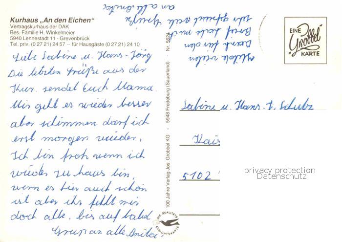 72729829 alte Postkarte Lennestadt Kurhaus An den Eichen postalisch gelaufen Erhaltung siehe scans [AndreD76] KatCode: 11110005966020