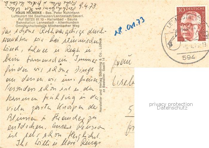 73680041 alte Postkarte Lennestadt Saalhausen Haus Hilmeke Schwimmbad postalisch gelaufen Erhaltung siehe scans [LiesaD40] KatCode: 11110005966020