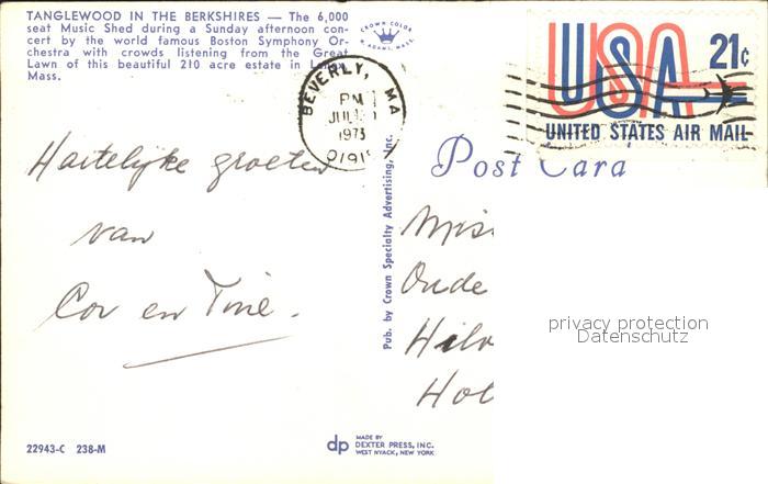 71940932 old postcard Lenox Massachusetts Tanglewood in the Berkshires Music Shed Boston Symphony Orchestra Concert postalisch gelaufen Erhaltung siehe scans KatCode: 14140230000000