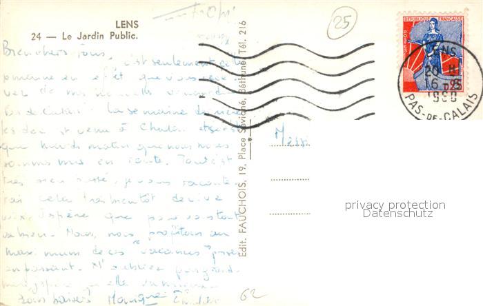 13523946 carte postale Lens Pas-de-Calais Jardin Public postalisch gelaufen Erhaltung siehe scans [FriedD77] KatCode: 11170062762498