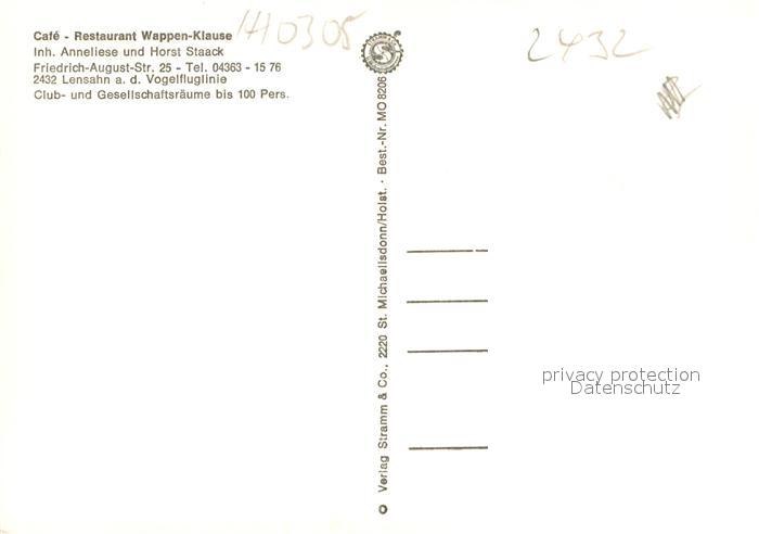 73662263 Lensahn Cafe Restaurant Wappen-Klause postalisch nicht gelaufen Erhaltung siehe scans [FriedD77] KatCode: 11110001055027