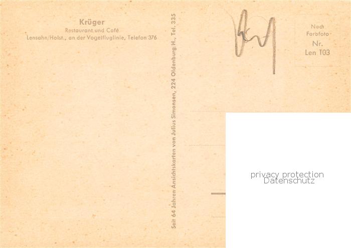 74052473 Lensahn Krueger Restaurant und Cafe Gaststube postalisch nicht gelaufen Erhaltung siehe scans [FriedD77] KatCode: 11110001055027