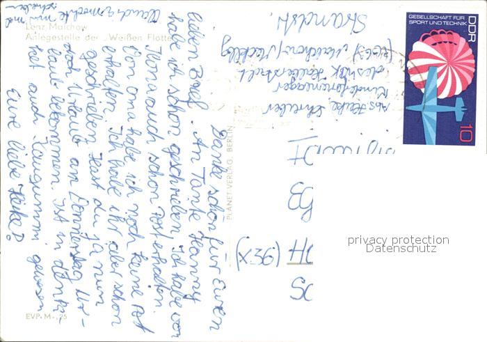 72064301 alte Postkarte Lenz Malchow Anlegestelle der Weissen Flotte Petersdorfer Kanal postalisch gelaufen Erhaltung siehe scans KatCode: 11110013056041