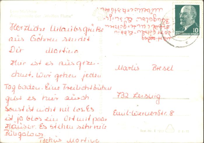 old postcard Lenz Malchow Anlegestelle Weissen Flotte postalisch gelaufen