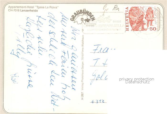 13865788 alte Postkarte Lenzerheide GR Appartement Hotel Tgesa La Roiva postalisch gelaufen Erhaltung siehe scans [WerneD78] KatCode: 11470360610438