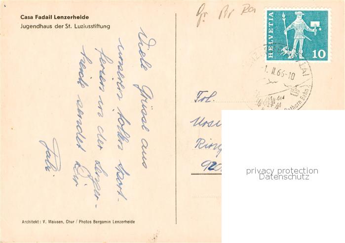 13865776 alte Postkarte Lenzerheide GR Casa Fadail Jugendhaus der St Luziusstiftung postalisch gelaufen Erhaltung siehe scans [WerneD78] KatCode: 11470360610438