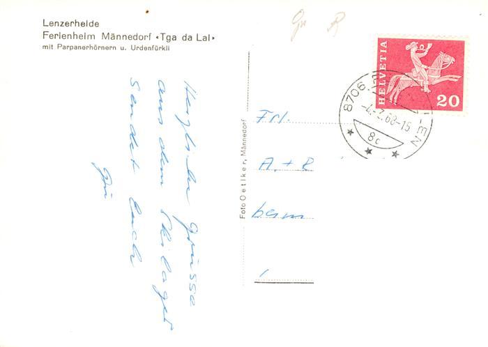 13889119 alte Postkarte Lenzerheide GR Ferienheim Maennedorf Tga da Lai mit Parpanhoernern und Urdenfuerkli postalisch gelaufen Erhaltung siehe scans [WerneD78] KatCode: 11470360610438