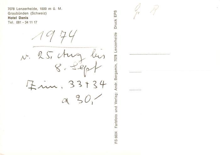 13889118 Lenzerheide GR Hotel Danis postalisch nicht gelaufen Erhaltung siehe scans [WerneD78] KatCode: 11470360610438