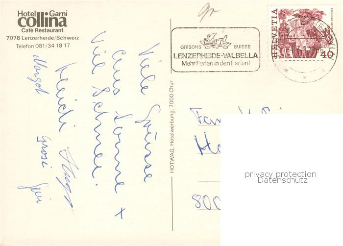 13865773 alte Postkarte Lenzerheide GR Hotel Garni Collina Cafe Restaurant postalisch gelaufen Erhaltung siehe scans [WerneD78] KatCode: 11470360610438