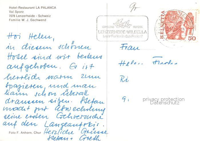 13865764 alte Postkarte Lenzerheide GR Hotel Restaurant La Palanca Val Sporz postalisch gelaufen Erhaltung siehe scans [WerneD78] KatCode: 11470360610438